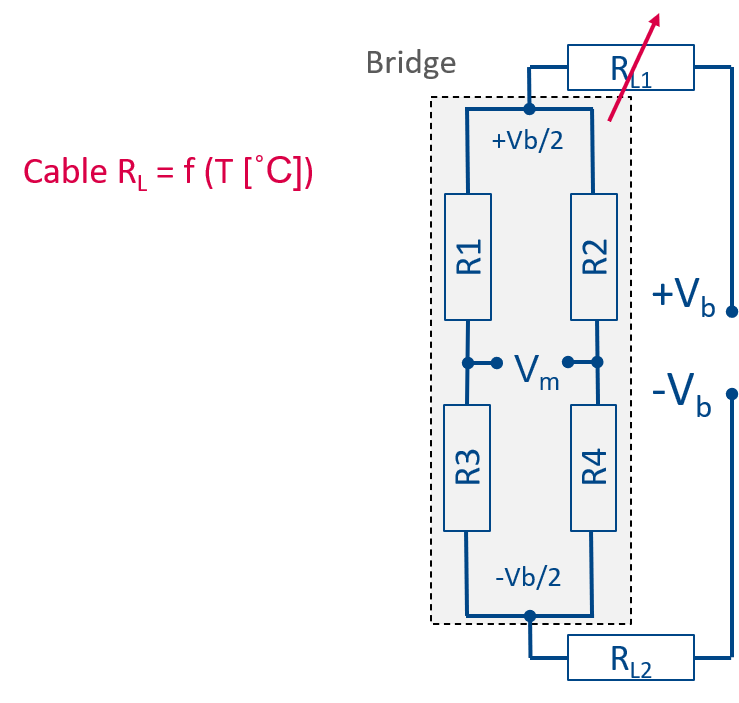 스트레인 게이지의 도선 저항에 의한 영향은 도선 저항의 합에 대한 Bridge impedance의 비율이 중요합니다.